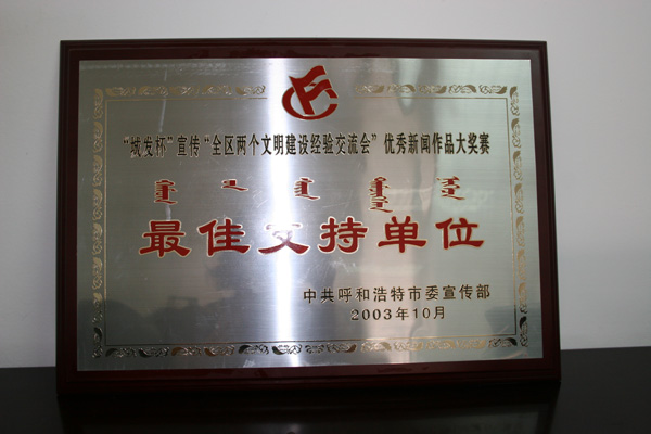 城發(fā)公司獲得2003年城發(fā)杯宣傳全區(qū)兩個文明建設(shè)經(jīng)驗(yàn)交流會優(yōu)秀新聞作品大獎賽最佳支持單位