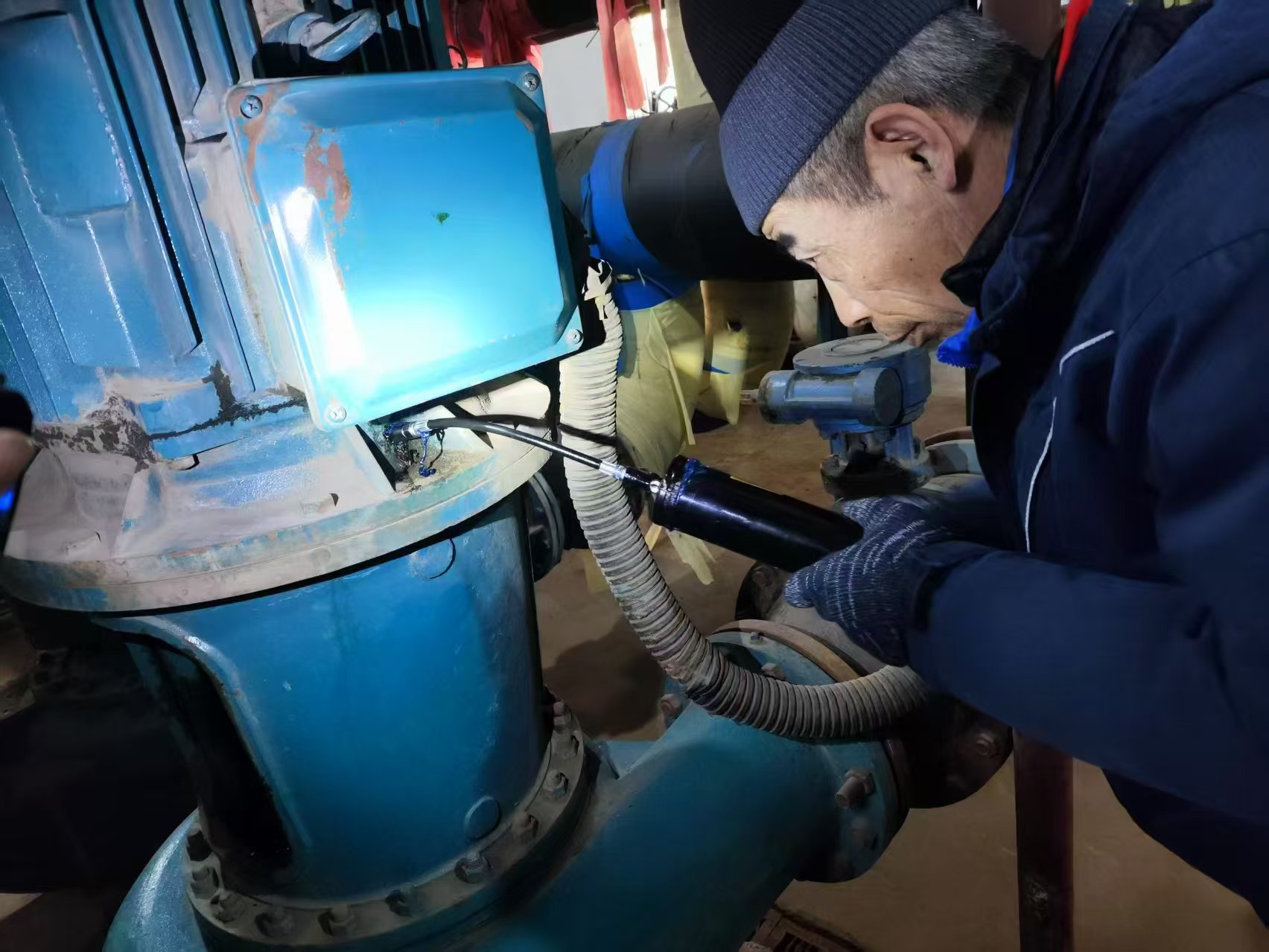 2024年12月23日晚上8點(diǎn)多,萬惠站內(nèi)失水掉壓,蘇昭和同事們立即沿線進(jìn)行排查,找到2處跑水點(diǎn)。在緊張的搶修過程中,蘇昭白天配合挖機(jī)作業(yè)、抽排污水,晚上協(xié)助檢修所員工下地溝為DN300的管網(wǎng)打上2個(gè)大抱卡。經(jīng)過一天一夜的連續(xù)奮戰(zhàn),終于在24號(hào)凌晨2:00完成了搶修和回填,92個(gè)商鋪恢復(fù)了供熱。由于天氣寒冷,蘇昭和同事們身上結(jié)出了冰碴,手也凍僵了。“忙起來就顧不了那么多了,問題解決了才能松一口氣?!彼f。