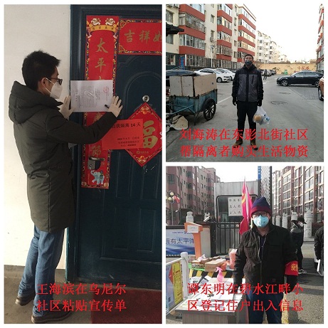 綜合辦公室職工蒙哥哲別、孟憲忠是資歷較早的城發(fā)人,具有較強的團結(jié)友愛和責(zé)任意識。他們也用實際行動詮釋著國企職工的勇于擔(dān)當(dāng)和履職盡責(zé),2月19日他們分別到三干社區(qū)、麗苑社區(qū)參加一線防疫工作,為摩爾城片區(qū)隔離人員辦理解除隔離手續(xù),為小區(qū)進出人員辦理登記、核查工作,他們中最長工作時間要從早上9點工作到下午5點,長時間、高強度工作的他們沒有一絲懈怠,一如既往的堅守崗位,辛苦付出。從截至目前,蒙哥哲別已辦理隔離人員解除手續(xù)30余人,孟憲忠他們所在的麗苑小區(qū)經(jīng)過嚴(yán)格管控,未發(fā)現(xiàn)一例發(fā)熱進出人員。