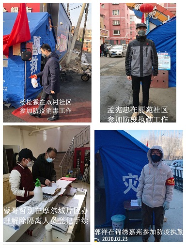 工程處入黨積極分子白文平、職工馬志強、曹明晴、成秀英、楊建剛是金城小區(qū)項目的工程師,疫情發(fā)生后,他們積極響應(yīng)公司號召到各自社區(qū)金城小區(qū)、橋靠社區(qū)、星河御園小區(qū)、廣廈小區(qū)、望興園小區(qū)參加疫情防護工作。他們在各自防控小組中,恪盡職守、站崗執(zhí)勤,每當(dāng)遇上大風(fēng)變天或值夜崗時,值守人員都很難取暖,但為了有效防控疫情,他們克服困難自備棉服、把全部問題都扛了下來。同時他們有的白天協(xié)助社區(qū)工作人員辦理登記、執(zhí)勤工作,晚上還要利用空余時間張貼宣傳單,默默的奉獻和堅守又何嘗不是為群眾們再加一層最強的防護網(wǎng)呢!