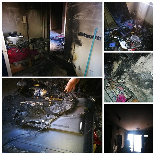 3月15日夜間12點30分,城發(fā)物業(yè)公司所服務的陽光美居公租房8號樓,812室電視機短路自燃引發(fā)火災,火苗迅速蔓延,被引燃的電視柜、沙發(fā)瞬間助推了火勢。當住戶被濃煙嗆醒時,室內狹小的空間已被濃煙和火苗占據(jù),住戶無法實施自救。