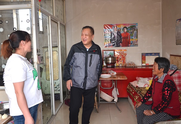 一下車,呂德育、吳利勤就走進(jìn)了“一對一”包扶貧困戶翟金蓮老人家中,老人因患有腦梗,年歲又高,沒有勞動能力,導(dǎo)致家庭貧困。呂德育關(guān)切地詢問了老人近來的身體健康狀況,仔細(xì)地查看了家里的環(huán)境衛(wèi)生情況,并向老人送去了自己的慰問金。老人感激地指著習(xí)主席的畫像說:“共產(chǎn)黨好,習(xí)主席好,多謝你們領(lǐng)導(dǎo)干部關(guān)懷和照顧,吃不愁,穿不愁,居住環(huán)境也干凈了,病了也有村合作醫(yī)療。我們老人趕上了好時代,才過上了這樣幸福的生活。”在交談中,呂德育再三叮囑老人要保重自己的身體,囑咐村干部要多照顧老人,特別要注意老人的身體健康和居家環(huán)境衛(wèi)生,讓老人度過一個幸福、安詳?shù)耐砟辍堄?、云崗、武云、趙永強(qiáng)也分別走訪調(diào)研了“一對一”包扶貧困戶,征求了貧困戶的意見和建議。