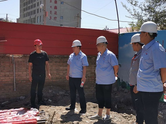 在三合村供熱分公司68號(hào)院木器廠平房區(qū)接入集中供熱項(xiàng)目施工現(xiàn)場(chǎng),檢查人員詳細(xì)查看了工程的進(jìn)展及各崗位施工人員的安全設(shè)施配備情況,并詢問(wèn)管材、管件等材料到位時(shí)限等情況。