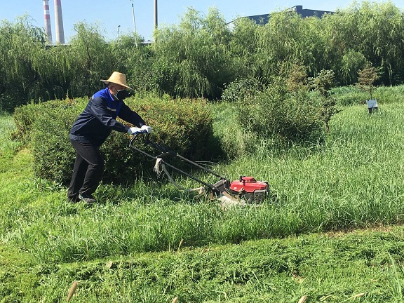 在除草過程中,大家不怕臟不怕累,默契配合,手持工具,將園區(qū)內(nèi)草坪、綠化帶雜草進(jìn)行了集中清理。盡管已立秋,但太陽的威力絲毫未減。除草過程中,大家的衣服很快就被汗水浸濕,但大家沒有退縮,直到雜草被清除干凈,整個(gè)園區(qū)的雜草被徹底清除干凈,才帶著滿身汗水和喜悅的笑容離開。