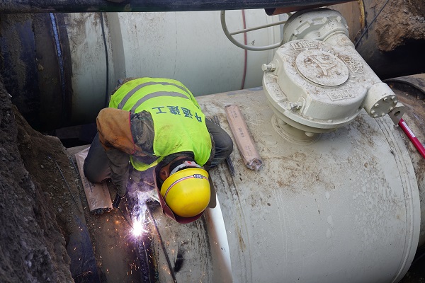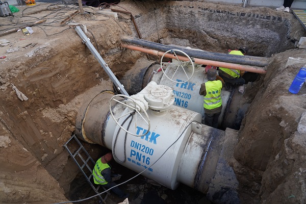 在金橋路一次管網(wǎng)改造施工現(xiàn)場,筆者看到DN1200主管線的球閥焊接工作已接近尾聲。據(jù)介紹,之后將陸續(xù)進行探傷、保溫、閥門井砌筑等工程。該處工程是在主管網(wǎng)加裝管道閥門,起到對主線關斷的作用,在冬季供暖期遇到突發(fā)事件可避免造成大面積停供,有效保障金橋區(qū)域今冬的正常供暖,預計9月中旬完工。