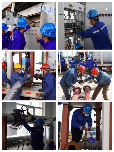 演練伊始,參加演習(xí)的運營所、司爐車間、檢修車間、電氣車間、儀表車間、設(shè)備處、安保處等人員按照預(yù)設(shè)的情境,各司其職,開始了管路連接、電源接入、鍋爐調(diào)試,再進行循環(huán)泵、補水泵盤車的調(diào)試,以及補水、循環(huán)泵啟動、鍋爐點火等等一系列有條不紊的實戰(zhàn)操作。