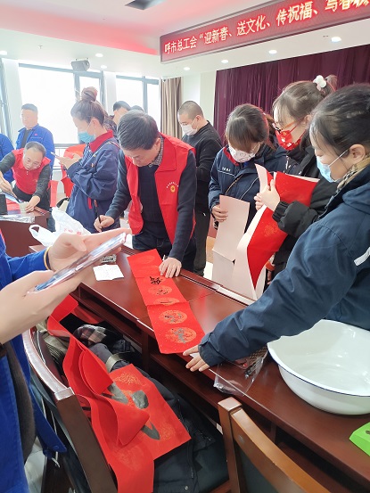 2022年春節(jié)將至,為營造歡樂祥和的節(jié)日氛圍,弘揚(yáng)中華民族傳統(tǒng)文化,給集團(tuán)公司職工送上新春美好的祝福, 1月11日下午,呼和浩特市總工會、集團(tuán)公司工會組織70余名職工群眾在集團(tuán)18樓會議室開展"迎新春、送文化、傳祝福、寫春聯(lián)"活動。