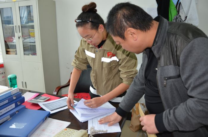 紀(jì)檢監(jiān)察部負(fù)責(zé)人核對(duì)金橋黨群工作情況。張亞利攝
