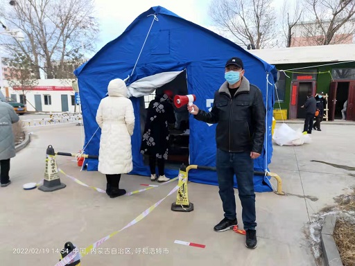 核酸檢測現(xiàn)場,防疫"突擊隊"的隊員們不畏嚴寒,按照社區(qū)的統(tǒng)一安排,分頭行動。負責維護現(xiàn)場秩序的同志們兩人一組,分別站在隊伍的前端和中端,前端的隊員囑咐居民提前準備好身份證件,并與檢測棚始終保護安全有效距離;后端的隊員負責喊話居民,保持好一米間距,并為年紀大的老人及帶孩子前來檢測的居民開通綠色通道,讓他們優(yōu)先采樣。倒春寒的天氣,讓穿著厚實的突擊隊員們?nèi)滩蛔≡匦∨芷饋?,讓快要凍僵的手腳得到緩解,即便如此,大家始終毫無怨言,盡心盡力服好務、站好崗;負責喊話居民下樓測核酸的隊員,一人一組來到居民樓下,他們從這一座樓跑到下一座樓,不間斷地用喇叭呼喊:"請還沒做核酸的居民下樓做核酸啦",看著居民們陸陸續(xù)續(xù)地前去做核酸,他們很有成就感。在大家的通力配合下,核酸檢測現(xiàn)場井然有序,不但有效縮短了居民的等候聚集時間,還最大程度避免減少了交叉感染隱患。在晚間8時左右,3支防疫"突擊隊"均配合社區(qū)順利完成了核酸采樣及收尾工作。
