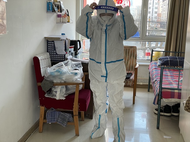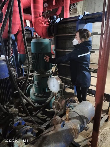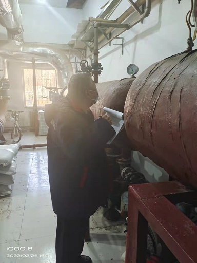 新華東分公司巨華朗域熱力站是受小區(qū)封控管理影響的第一個熱力站,公司臨時組建的運(yùn)營小組的李文霞從17日小區(qū)封控以來,一直在熱力站值守。2月24日,筆者來到長樂宮供暖所,看到所長李瑋潔正在和李文霞視頻通話:"每天的消殺要做好,你自己和你愛人的防護(hù)工作也要做好,站里運(yùn)行一切正常吧?你還需要什么物資嗎?"李瑋潔關(guān)切的詢問、耐心的叮囑著。李文霞說:"站內(nèi)運(yùn)行一切正常,我每天都按照要求對站內(nèi)進(jìn)行消殺,我和我愛人也很注意防護(hù)工作,分公司委托疫情防控人員給我們送進(jìn)來的物資還有很多,請領(lǐng)導(dǎo)放心,我會一直堅守在工作崗位上。" 筆者又看到一旁有位工作人員在穿防護(hù)服,李瑋潔告訴筆者:"武警小區(qū)熱力站也在封控區(qū)域,我們和疫情防控相關(guān)人員溝通后,每天由站員穿著防護(hù)服,戴著口罩、醫(yī)用手套、防護(hù)面罩進(jìn)行4次巡檢,現(xiàn)在正在穿隔離服準(zhǔn)備去巡檢的是索媛媛。"二十多分鐘后,索媛媛回來,筆者看到她的隔離面罩上全都是霧氣,只見她熟練地將隔離服脫掉扔到指定的垃圾箱內(nèi),隨即開始做常規(guī)的消殺。她告訴筆者:"以前看到防疫一線的醫(yī)務(wù)人員穿著防護(hù)服工作只是覺得他們很辛苦,但是自從我也需要穿防護(hù)服巡站時,才有了親身的體驗,不僅防護(hù)服穿脫時不方便,而且著裝后行動也變得不靈敏,我每次只穿半個小時左右就覺得很不舒服了,而醫(yī)護(hù)人員一穿就一整天,還不能上廁所,因此,我這點(diǎn)辛苦算不了什么。"