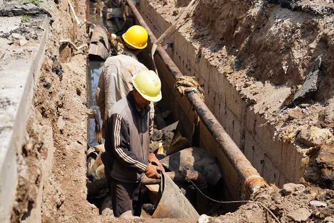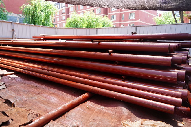 據施工方介紹,"該小區(qū)供熱管線總長約7000米,供熱管道因長期浸泡在污水中,腐蝕嚴重。如意小區(qū)分A、B、C三個區(qū),還有東西商網,目前僅僅B區(qū)的供熱管溝內污水較少,A、C兩個區(qū)、東西商網的地溝內幾乎全部是污水,最深的管溝內深度達到了近1.2米,給施工增加了難度。每天早上開始用三臺泵抽排污水,中午休息1個半小時后,開始施工時,溝內又有了污水。尤其是經過一晚上的停工,第二天溝內污水深度又達到了1米多。為確保工期,不影響按期供暖,目前采取分段式施工方案,先抽干地溝中的污水,再進行管道更換。三伏天,工人師傅們穿著連體防水服,忍受著刺鼻的氣味,在污水深達一米多的地溝內,一泡就是一天。施工至今已近二個月,每一天他們都是這樣重復著工作,清理不斷涌出的污水,拆除舊管,鋪設新管,一天的工作后,打濕衣服的不只是污水還有汗水。"