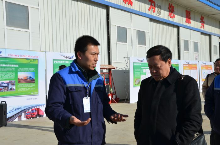呼市商務(wù)局領(lǐng)導(dǎo)給代表們講解物流園區(qū)的建設(shè)情況。亞利攝
