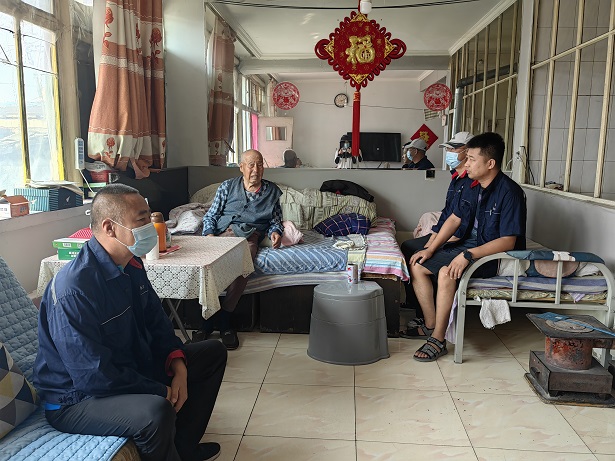 為了落實(shí)創(chuàng)城工作的相關(guān)要求,弘揚(yáng)尊老、愛老、助老的傳統(tǒng)美德,8月11日上午,富泰熱力公司新華西分公司黨支部富興黨小組組織黨員和員工來到供熱轄區(qū)孔家營(yíng)北區(qū),看望慰問孤寡老人郝爺爺。