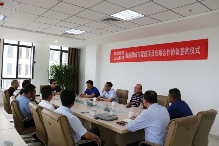 2018年5月16日下午,城發(fā)物流公司與內(nèi)蒙古云弘科技有限責(zé)任公司就新能源城市配送項(xiàng)目簽訂了戰(zhàn)略合作協(xié)議。