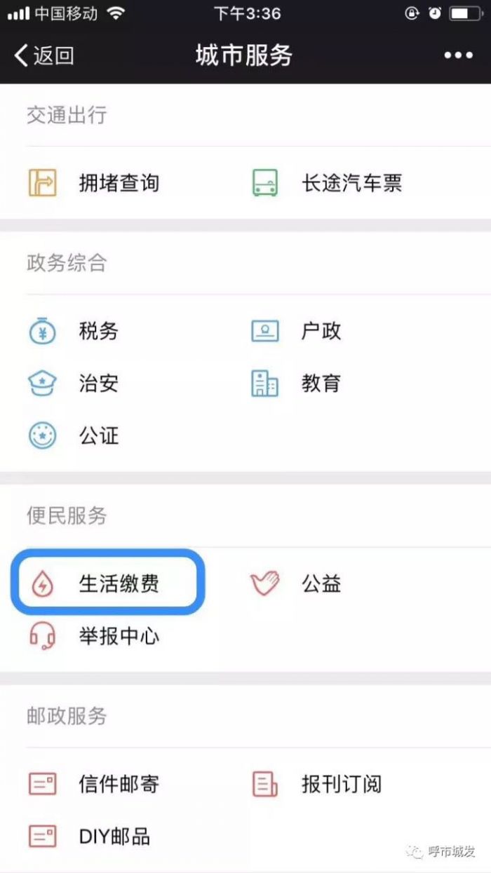 正確的微信繳費(fèi)流程:我-錢(qián)包-城市服務(wù)-便民服務(wù)(生活繳費(fèi))-呼和浩特城發(fā)供暖繳費(fèi)(官方)