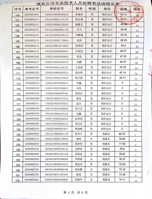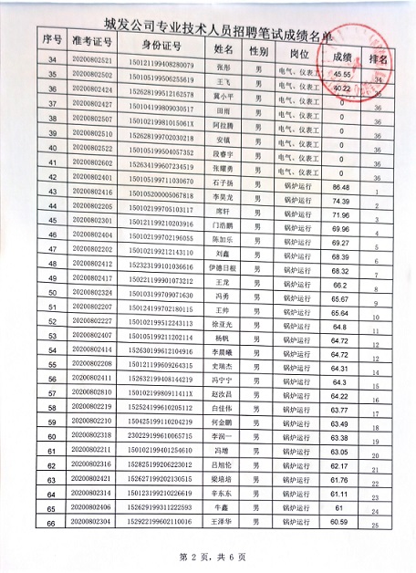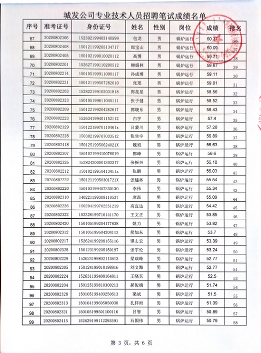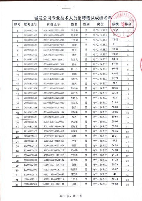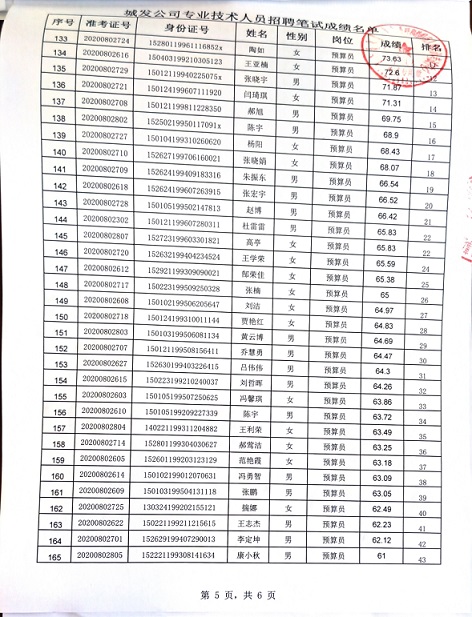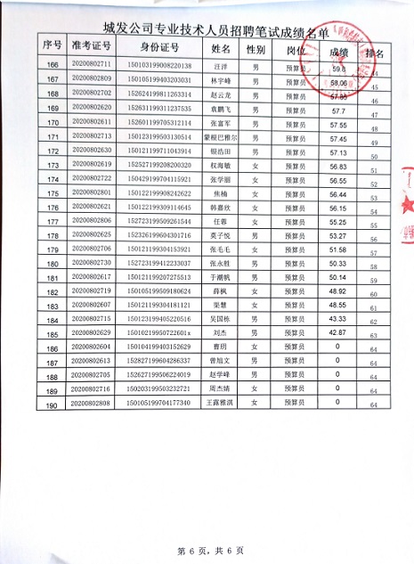 2020年城發(fā)公司專業(yè)技術人員招聘筆試成績名單