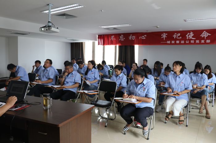 6月28日上午,客運公司黨支部副書記呂振平同志在3樓培訓室為職工講黨課。