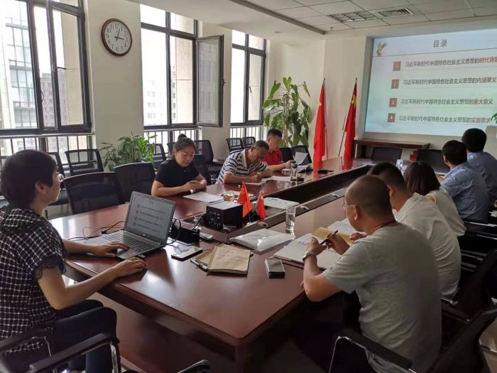 7月18日下午,物業(yè)公司黨支部書記娜仁同志在會議室以《深入學習實踐習近平新時代中國特色社會主義思想》為主題,為全體黨員和入黨積極分子講了一堂具有很強的思想性、政治性和指導性的專題黨課。城發(fā)公司黨委副書記張永同志參加學習。