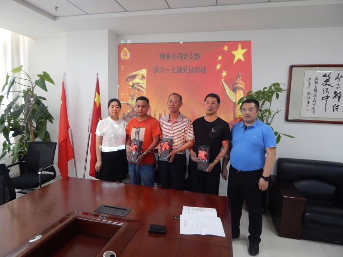 8月1日,物業(yè)公司黨支部開展“慶八一”主題黨日活動(dòng),共同慶祝中國(guó)人民解放軍建軍92周年,公司3名復(fù)轉(zhuǎn)軍人和支部全體成員參加了活動(dòng)。