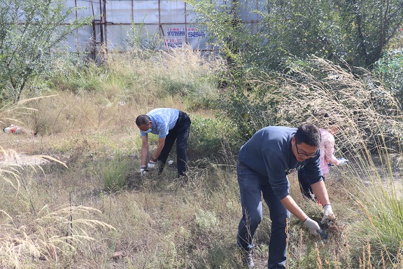 活動(dòng)中,大家在張永同志的帶領(lǐng)下進(jìn)行地毯式清除,大家戴手套、口罩、全副武裝,采取連根拔出和收割的方式徹底消除蒿粉傳播漂浮,切斷蒿粉過敏原并將拔出的蒿草及時(shí)清運(yùn),以免草籽散落再次生長。
