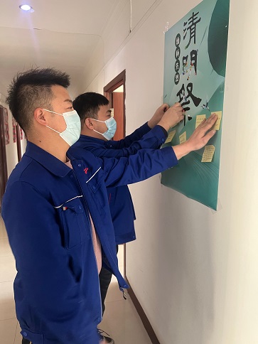 受新冠肺炎疫情影響,避免人群聚集,黨支部制作了祭英烈、宣傳文明祭掃海報(bào),張貼在樓道醒目位置,引導(dǎo)黨員干部在緬懷先輩的情懷中弘揚(yáng)傳統(tǒng)、增進(jìn)愛(ài)黨、愛(ài)國(guó)、愛(ài)社會(huì)主義的情感,通過(guò)留言寄語(yǔ),表達(dá)對(duì)革命先烈的緬懷和崇敬之情,同時(shí)要求黨員干部要以身作則,努力在節(jié)儉治喪、文明祭掃等方面作表率,以實(shí)際行動(dòng)影響和帶動(dòng)身邊群眾,做文明之風(fēng)的倡導(dǎo)者和傳播者,做革除陋習(xí)的先行者、移風(fēng)易俗的推進(jìn)者、文明祭祀的示范者。