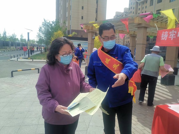 活動現(xiàn)場,黨支部書記娜仁按照既定方案,帶領(lǐng)大家分頭行動起來。“民族政策宣傳組”的隊員們一邊向過往的居民發(fā)放黨的民族理論和民族政策宣傳單,一邊做好現(xiàn)場宣傳講解,重點宣傳了黨的民族政策的主要內(nèi)容、民族平等政策的內(nèi)涵、民族區(qū)域自治政策的內(nèi)涵、現(xiàn)階段我國民族工作的主題、現(xiàn)階段發(fā)展少數(shù)民族經(jīng)濟的方針、民族團結(jié)關(guān)系的“三個離不開”內(nèi)容、民族團結(jié)工作的“四個維護”內(nèi)容及習近平總書記對各民族提出的“五個認同”等內(nèi)容;講解了如何理解“中華民族共同體意識”、如何理解“推廣普及國家通用語言文字教育”等內(nèi)容。“安全防火宣傳組”的隊員們分三組入樓開展安全防火宣傳檢查,重點對樓道內(nèi)個別存在的亂堆放雜物、亂停非機動車及擅自占用、堵塞消防通道的住戶張貼清理通知單、宣傳將樓道占為己用的重大安全隱患,并告知業(yè)主限期自行清理,切實保障廣大業(yè)主的居住安全和環(huán)境衛(wèi)生。